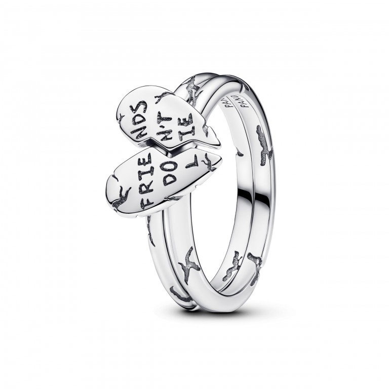 O Anel Divisível Friends Don't Lie Stranger Things é fabricado em prata e apresenta um motivo de coração que se divide para revelar a inscrição "FRIENDS DON'T LIE." Perfeito para o estilo do dia-a-dia, o design com esferas recorda-nos das pulseiras da amizade retro. Use-o sozinha ou partilhe-o com a sua melhor amiga para simbolizar os vossos laços inquebráveis.