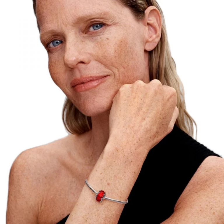 Celebre a quadra festiva com a nossa Conta Vidro Murano Magia do Natal. O núcleo da nossa conta de vidro Murano vermelho está coberto por folha dourada para um brilho interior cálido. Árvores de Natal, bonecos de gengibre e corações de bengala doce, em prata, envolvem o exterior da conta para um toque extra de diversão festiva.