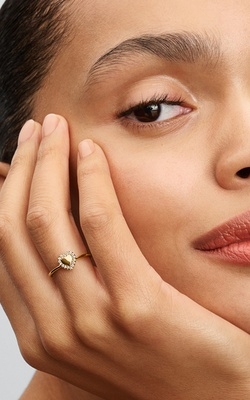 Personalize o Anel Auréola Coração Gravável. Este anel com revestimento de ouro 14k apresenta um coração central rodeado por pavé brilhante. O coração polido foi concebido para ser gravado com a sua inicial. O resultado final será uma peça de metal elegante com um significado único.
