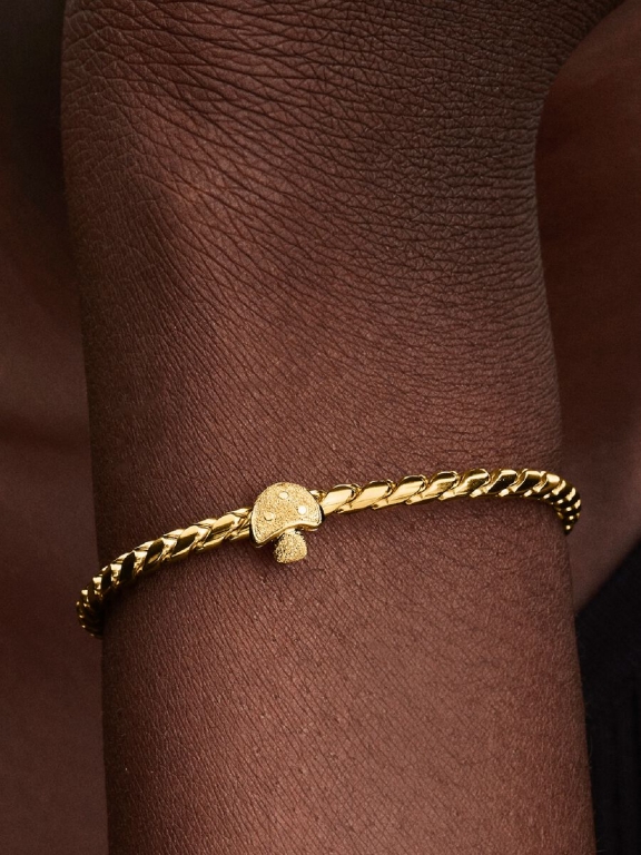 Pequena, mas com significado. A nossa mini conta cogumelo, com revestimento de ouro 14k, apresenta uma textura de ponta de diamante com pontos polidos realistas - um símbolo de crescimento, resiliência e força para prosperar em locais inesperados.