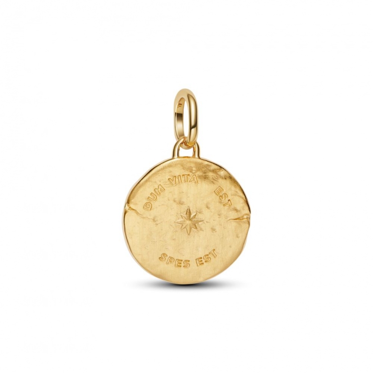 Um símbolo de força. Uma promessa de esperança. Este medalhão com revestimento de ouro 14k apresenta um motivo de andorinha e a inscrição latina "DUM VITA EST SPES EST" - para se lembrar de que "QUANDO HÁ VIDA, HÁ ESPERANÇA".