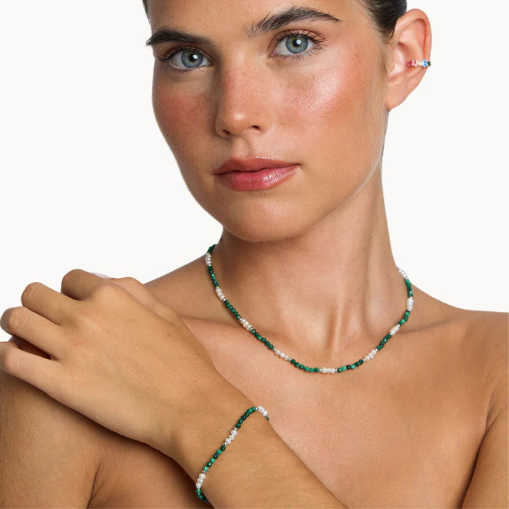 Pulseira de prata com Malaquite e Pérola de água doce.