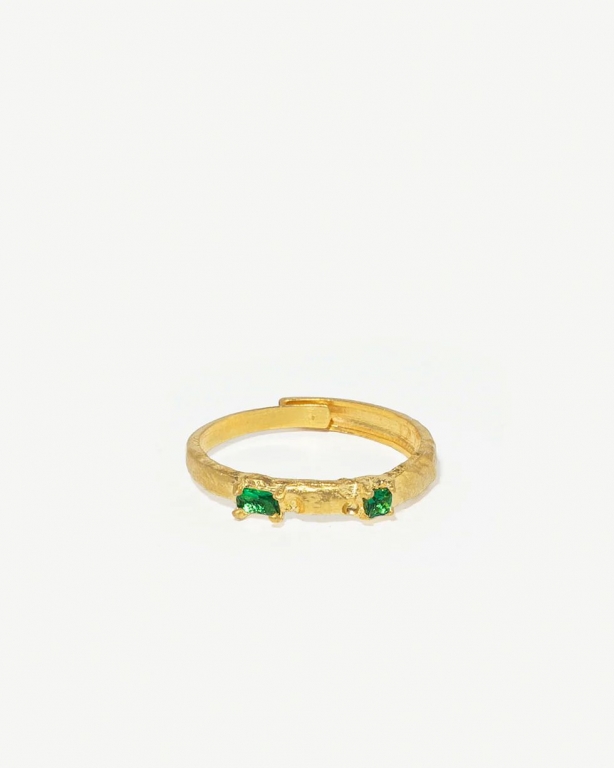 Anel assimétrico texturizado em prata 925 com banho de ouro 18k e zircónias, ajustável.