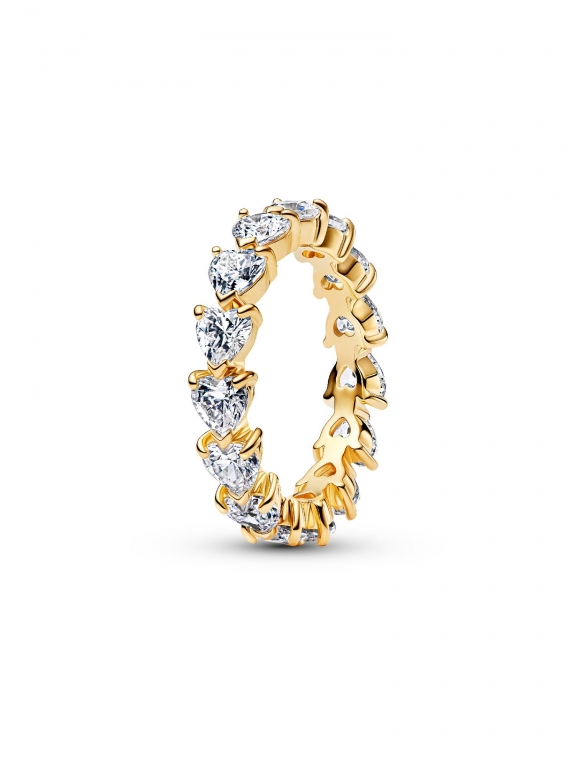 Um símbolo de amor eterno que pode usar. Pedras em forma de coração e grifos em V repetem-se para criar este anel eternidade cintilante: uma abordagem contemporânea à cravação clássica.