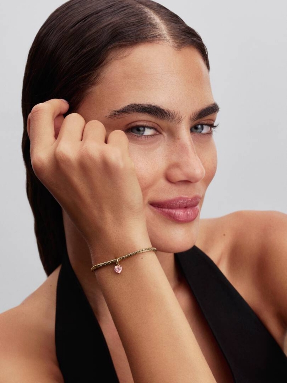 Torne o amor ilimitado com a nossa conta rosa em forma de coração. Com revestimento de ouro 14k e um cristal man-made vibrante, esta mini-conta tem grandes intenções.