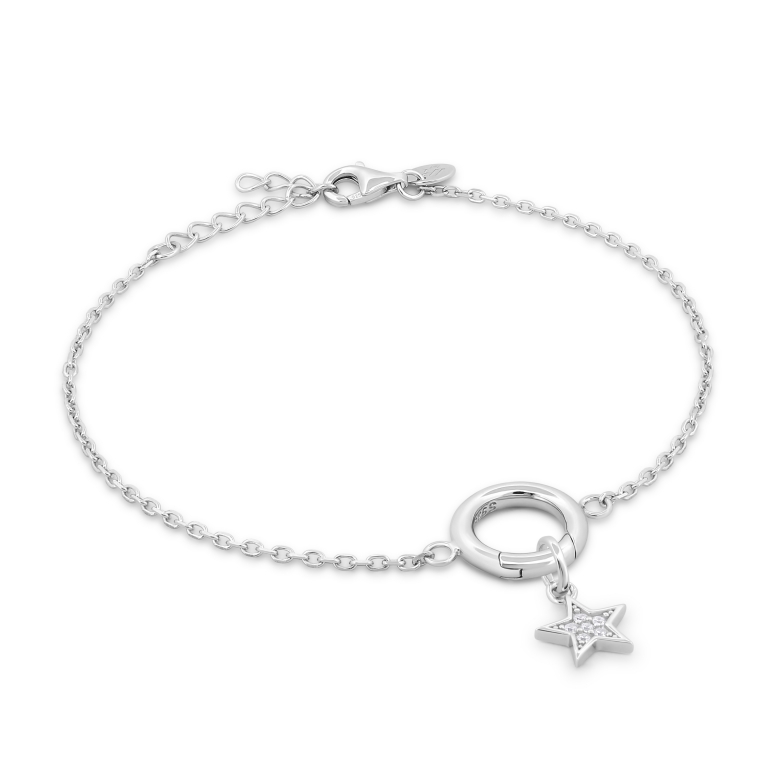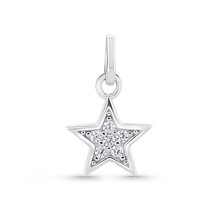 Charm Wish é um pendente em formato de estrela, revestido com pedras sintéticas. Representa os desejos que guardamos, os sonhos que nos guiam e a luz que nos acompanha enquanto escrevemos cada novo capítulo da nossa história. Esta peça não inclui a malha e é vendida à unidade. Podes combiná-lo com os restantes charms da coleção Chapter e usá-lo tanto no colar Story como na pulseira Story, criando uma composição única que reflete a tua própria narrativa.