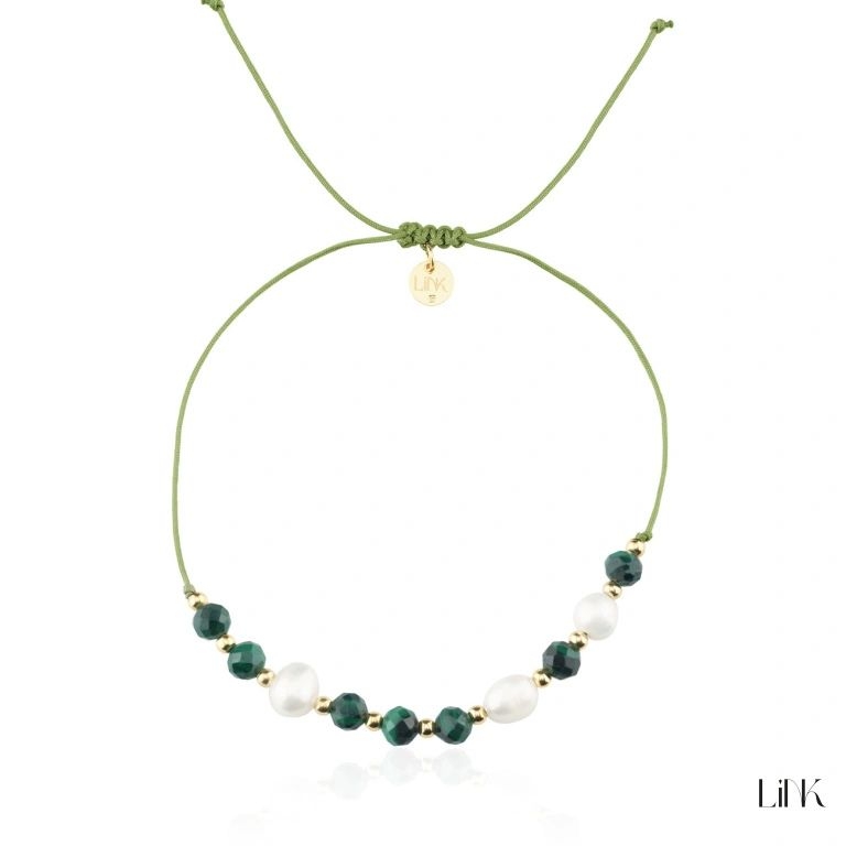 Pulseira de prata dourada com pedras naturais.