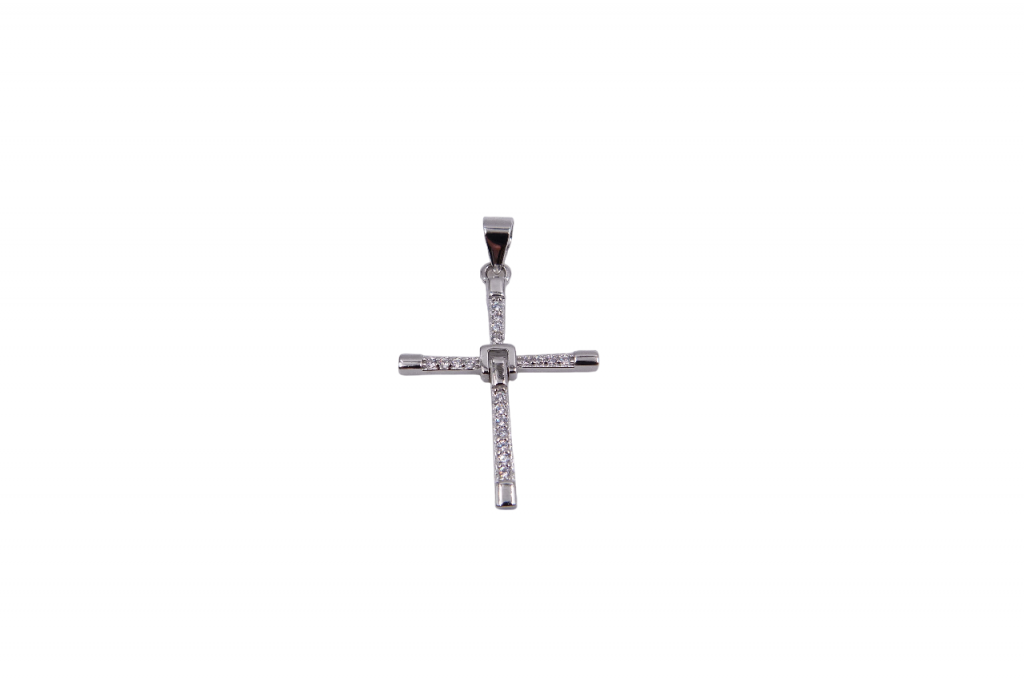 Medalha de prata com zircónias, cruz.