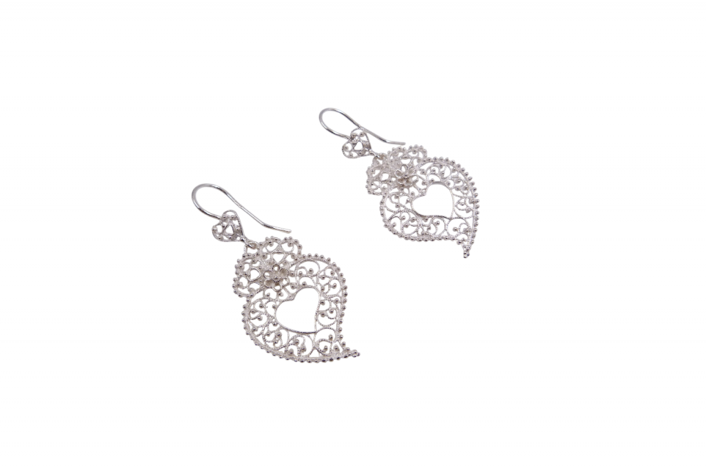 Brincos de prata em filigrana, de gancho.