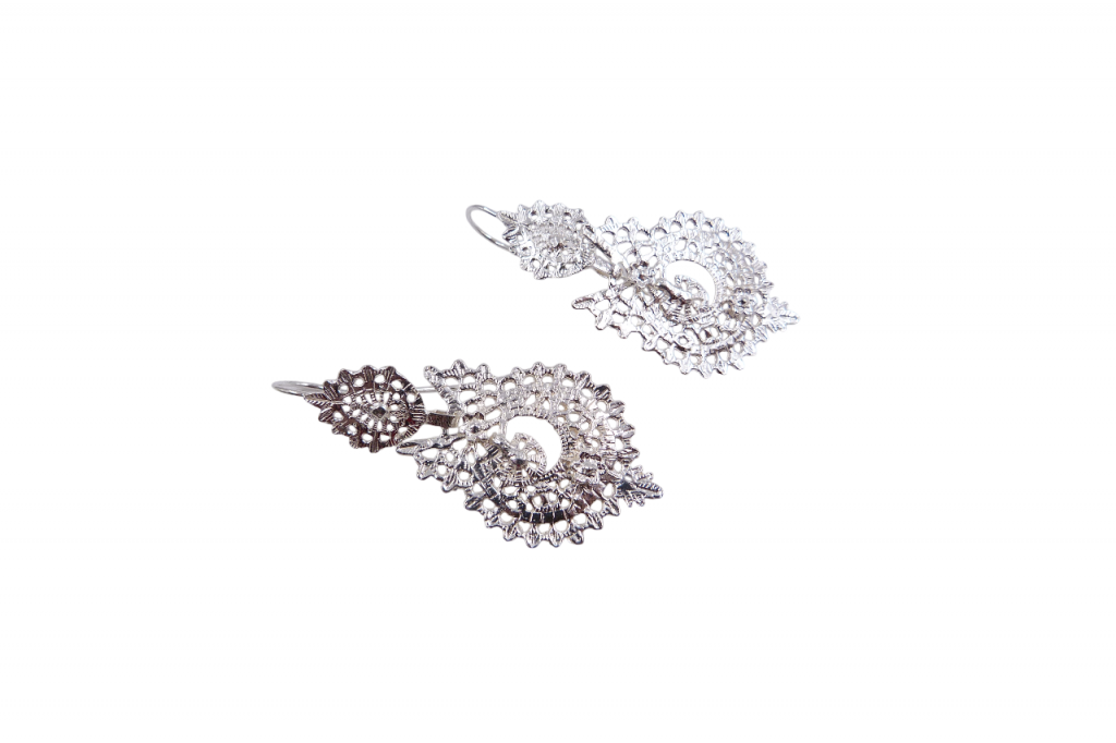 Brincos de prata em filigrana, de gancho.