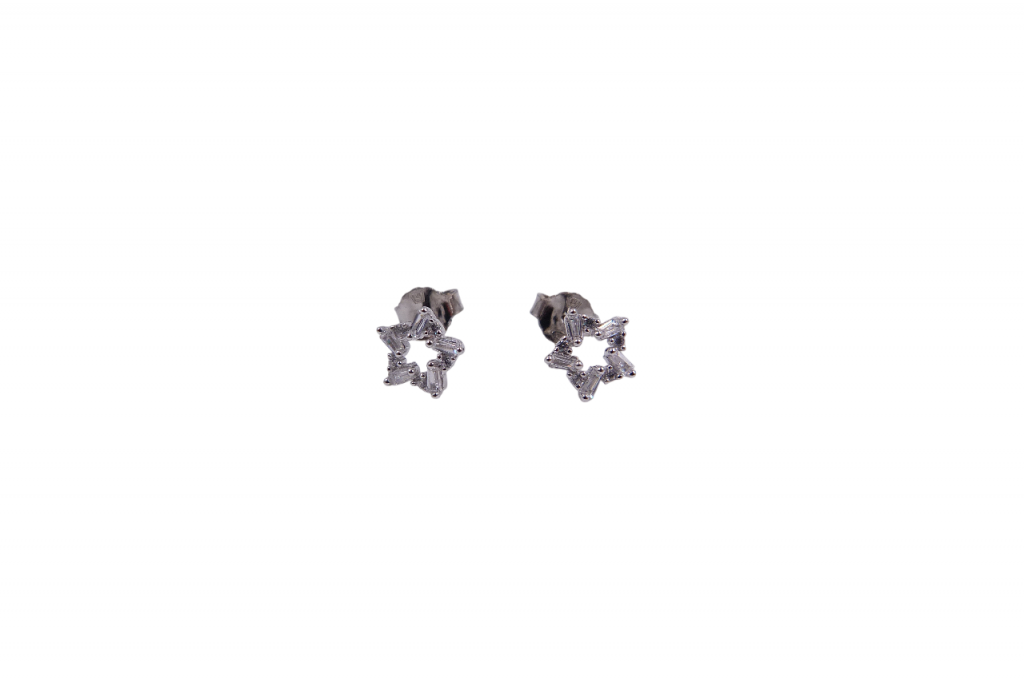Brincos de prata com zircónias, de espigão.