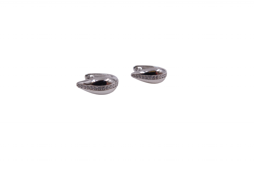 Brincos de prata com zircónias, argolas.
