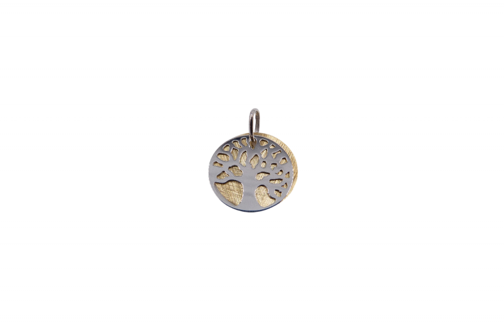 Medalha de prata bicolor. Mede 2 cm. Peso 1 g.