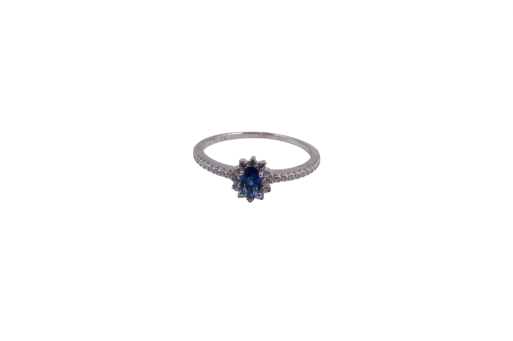 Anel de prata com zircónias. Peso 1.4 g.