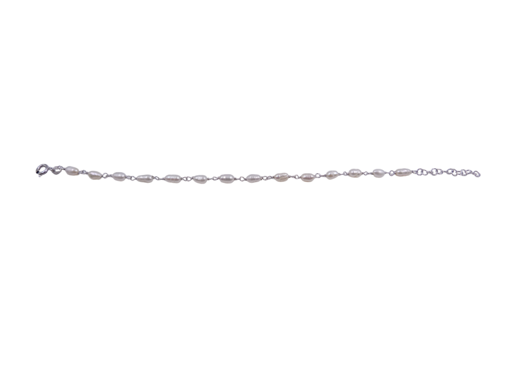 Pulseira de prata com pérolas.