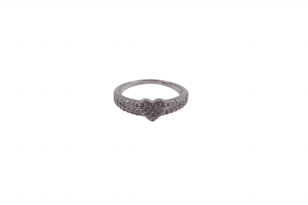 Anel de prata com zircónias. Peso 2 g.