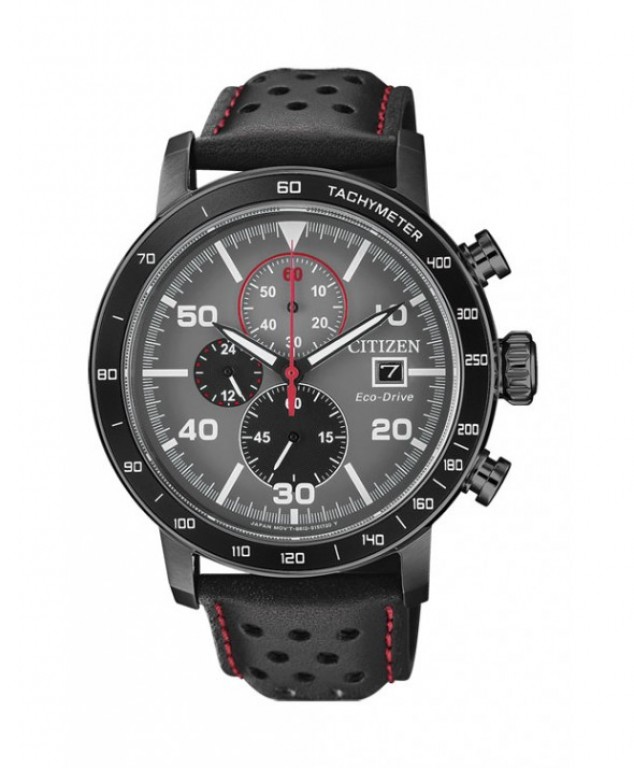 Relógio Citizen CA0645-15H, funcionamento eco-drive com reserva de carga de 7 meses. Cronógrafo a 1/5 por seg., 60 minutos. Calendário.