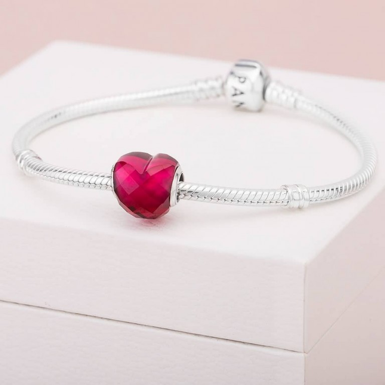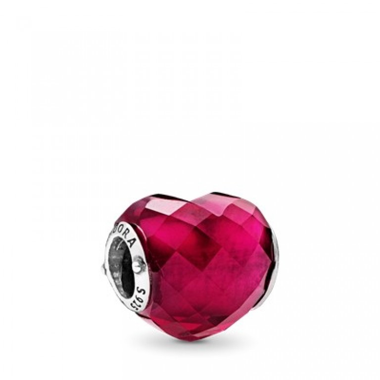 Conta Pandora de prata, cristal rosa fúcsia facetado, Coração