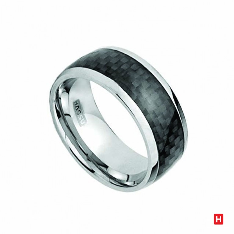 Anel em aço prateado, polido, 9 mm de largura.