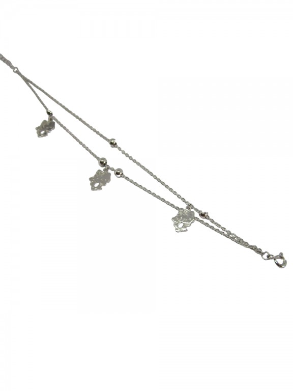 Pulseira de prata dupla, gatinhos pendentes.