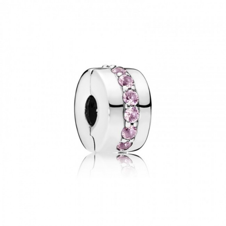 Os nossos clips criam equilíbrio nas pulseiras Pandora Moments, espaçando uniformemente as suas contas e acrescentando um acabamento decorativo. Este design de prata 925 polida, detalhado à mão com uma fila de zircónias em rosa, é perfeito para acrescentar um toque de rosa ao seu look. Combine com outros favoritos da colecção. Este clip não apresenta um centro de silicone, por isso não deslizará se não for colocado sobre roscas (dois separadores de contas elevados).