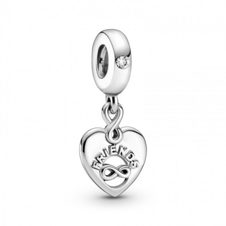 Descubra uma conta especial para a sua melhor amiga com a Conta Pendente Amigos para Sempre. Com acabamento manual em prata 925, este pendente em forma de coração inclui um símbolo assimétrico do infinito recortado, com a palavra “Friends” destacada à frente e a inscrição “Forever” atrás. Outro símbolo do infinito liga o pendente à união que apresenta uma pedra transparente brilhante. Declare amizade para sempre à sua melhor amiga com esta peça.