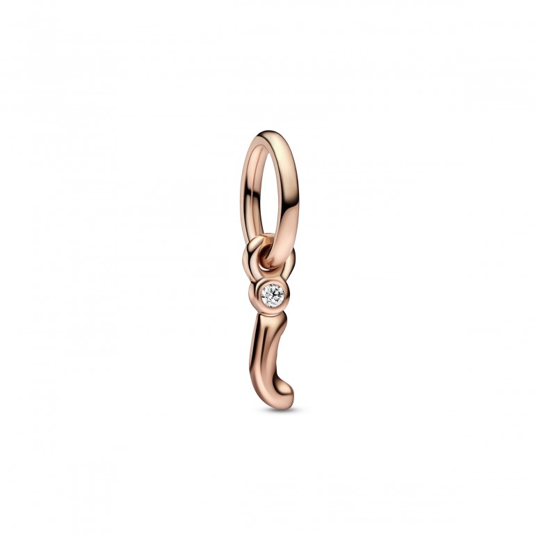 Soletre com a nossa Conta Pendente Alfabeto Letra i. Inspirada num fio dobrado e no movimento de uma caneta sobre papel, esta conta com revestimento de ouro rosa 14k apresenta uma letra "i" tridimensional que parece escrita à mão. O final da letra minúscula é pontuado alegremente com uma zircónia transparente de corte brilhante, representando que há algo precioso para todos nós. Use-a como símbolo de quem você é ou para se recordar de alguém que ama.
