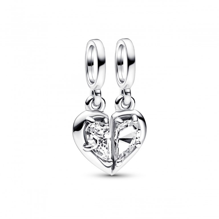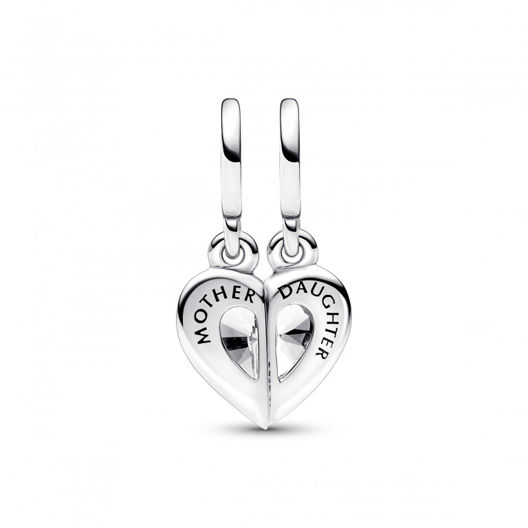 Uma conta repleta de significado que simboliza os laços inquebráveis entre mãe e filha. A Conta Pendente Divísivel Mãe e Filha consiste em duas contas pendentes de prata 925 que se conjugam para criar um coração em duas metades, com uma zircónia transparente ao centro e um coração recortado no lado inverso. Metade da conta está gravada com a palavra "MOTHER" e a outra metade com "DAUGHTER", para que cada uma possa usar uma metade, para se lembrar que o amor que partilha está sempre presente, mesmo estando separadas - porque terão sempre o coração de cada uma.